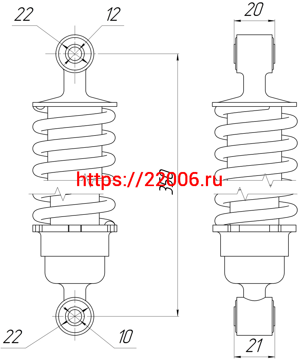 - Амортизатор Alpha зад. хром (L-350,D1-22,d1-12, Н1-20, D2-22,d2-10, Н2-21) ДОРОГОЙ (длинный стакан) в Cургуте недорого