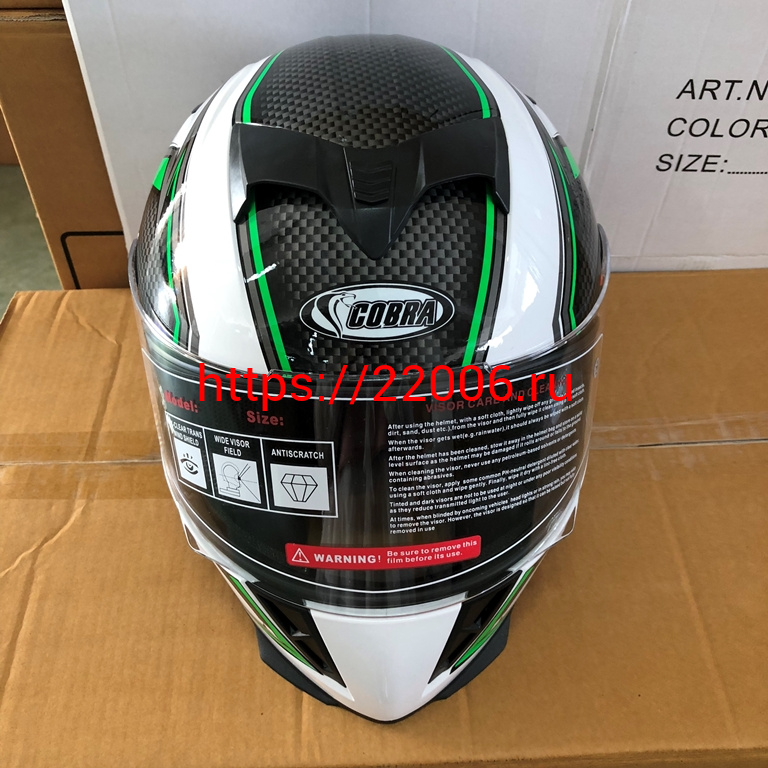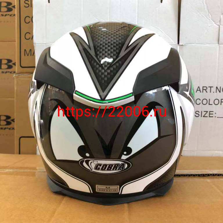 - Шлем интеграл COBRA JK311, белый с черным и зеленым(9), размеры L в Cургуте недорого